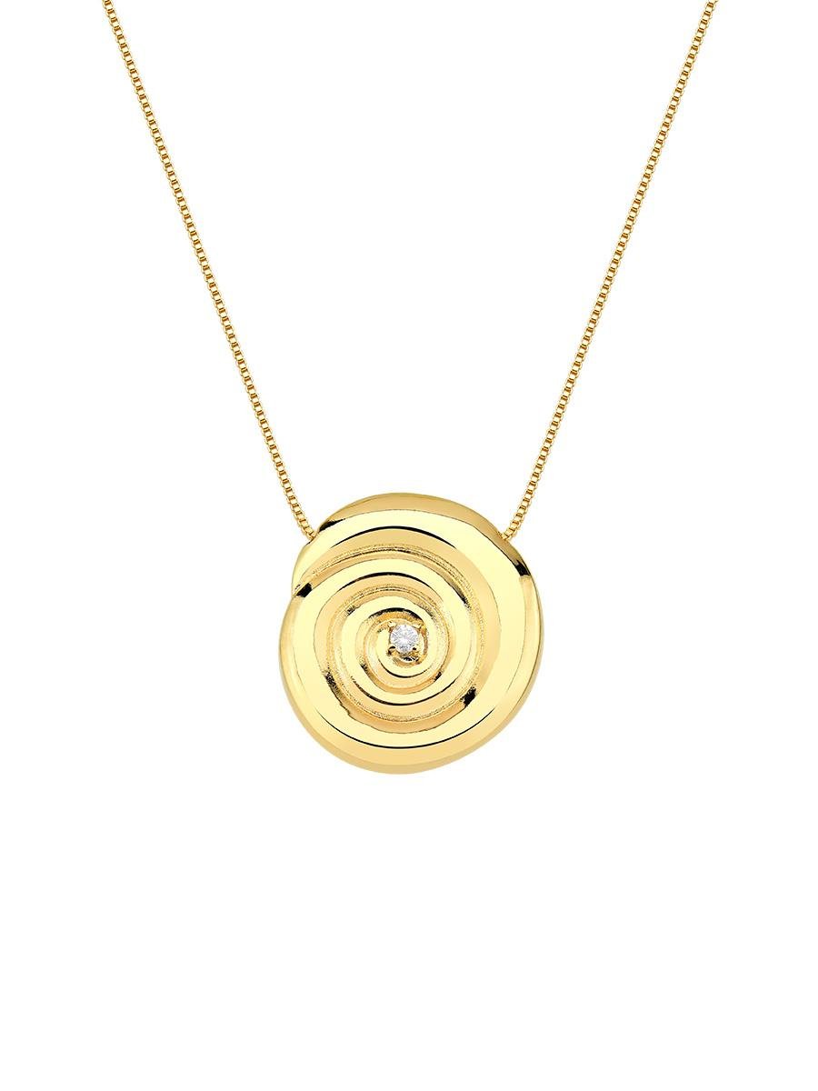 Colar com pingente em formato de espiral liso e cravejado com zircônia incolores na corrente veneziana, no banho de ouro 18k.| Comprimento | 50 cm (mais 5 cm de extensor) |