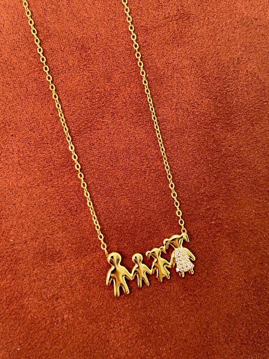 Colar Família Filho e Filha Cravejado Banhado a Ouro 18k.Coleção Alma de Mulher: peças exclusivas para suas maiores vendas do ano!