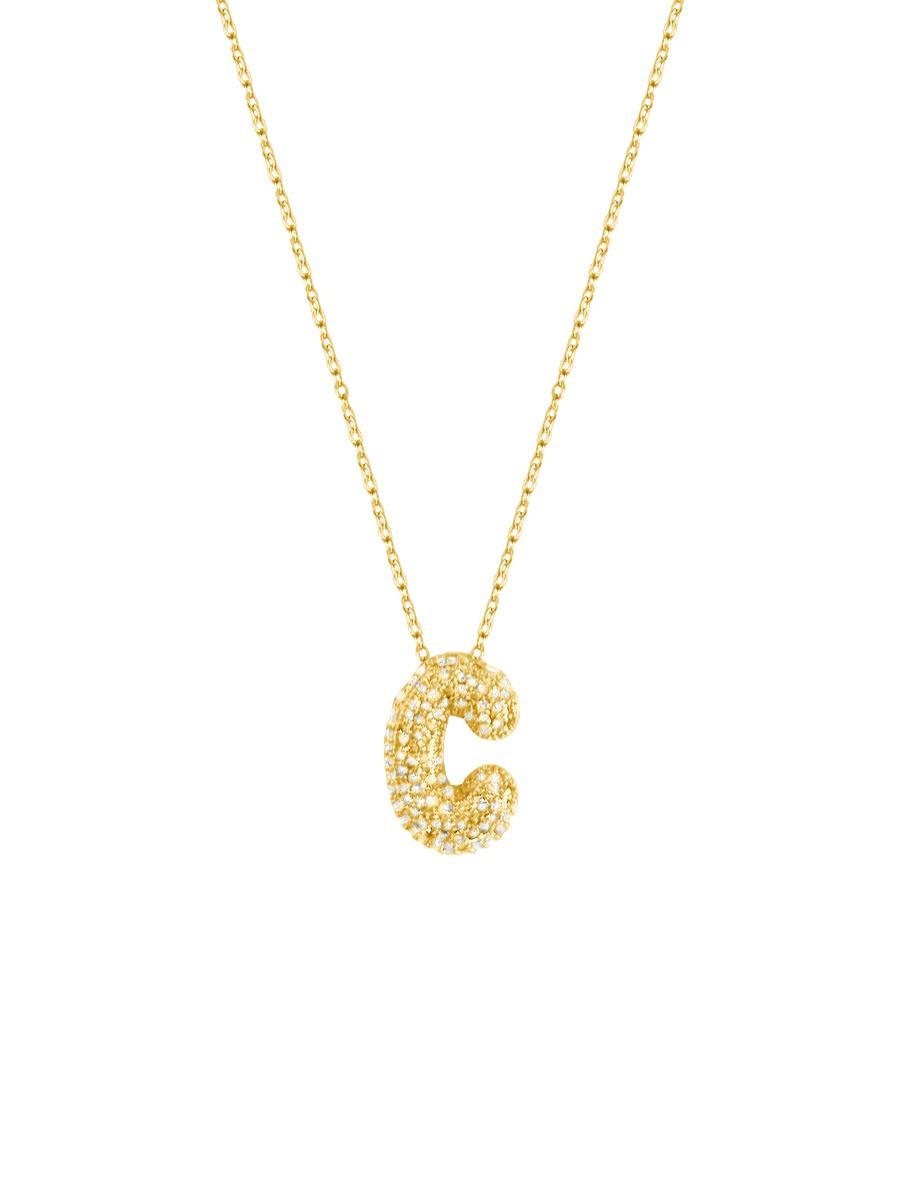 Colar letra cravejada incolor na corrente mini elos, no banho de ouro 18k.| Comprimento | 45 cm (mais 5 cm de extensor) |