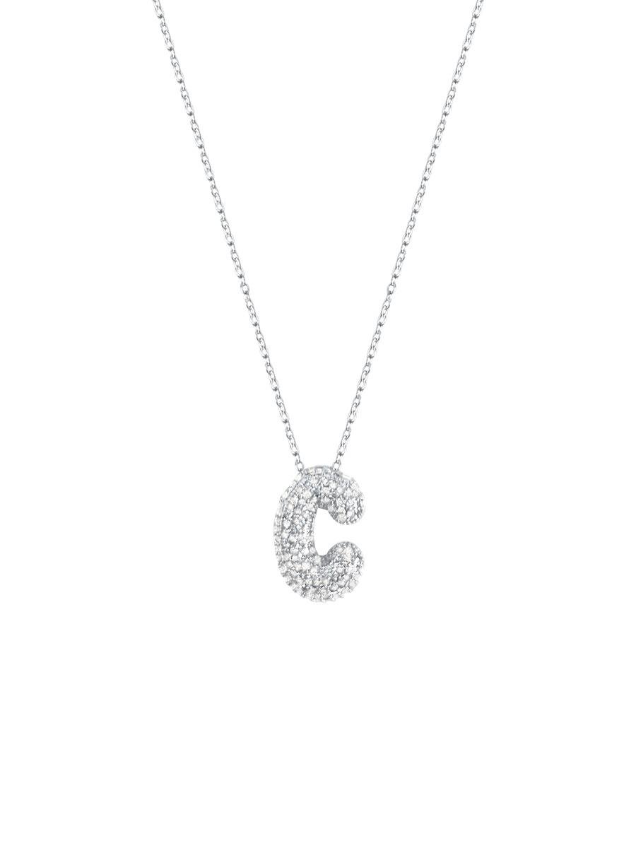 Colar letra cravejada incolor na corrente mini elos, no banho de ródio branco.| Comprimento | 45 cm (mais 5 cm de extensor) |