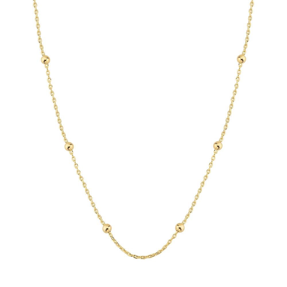 Colar longo com corrente mini elos e bolinhas lisas, folheado a Ouro 18K.