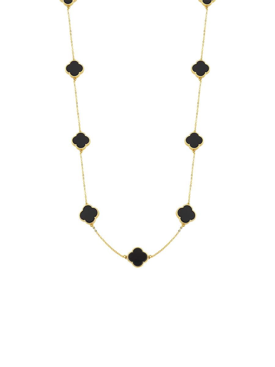 Colar longo de trevo com madre pérola negra, banho de ouro 18k.| Tamanhos | |