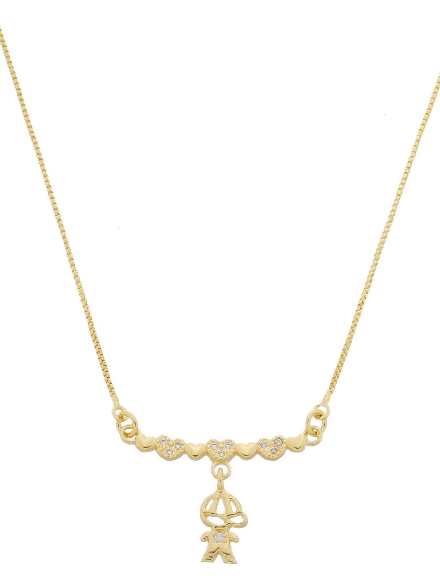 Colar de veneziana com canga de menino e corações cravejados com zircônias incolores banho de ouro 18k.| Comprimento | 41 cm (mais 5 cm de extensor) |