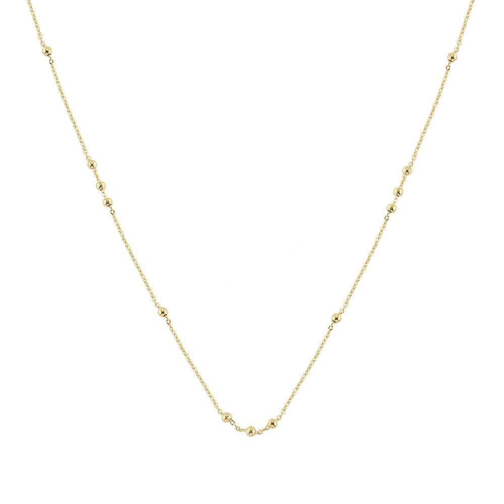 Colar Mini Elos com Bolinhas Banhado a Ouro 18k.As correntarias são a base de qualquer coleção de semijoias, oferecendo uma infinidade de possibilidades para compor e realçar diferentes looks. Nossa linha de correntes inclui desde o clássico cordão baiano até malhas, fitas, sendo cada peça pensada para trazer estilo e sofisticação ao seu mostruário. Feitas com materiais de alta qualidade e acabamentos perfeitos, essas correntes são versáteis, podendo ser usadas sozinhas ou combinadas com pingentes e outras semi joias, criando composições únicas para suas clientes.