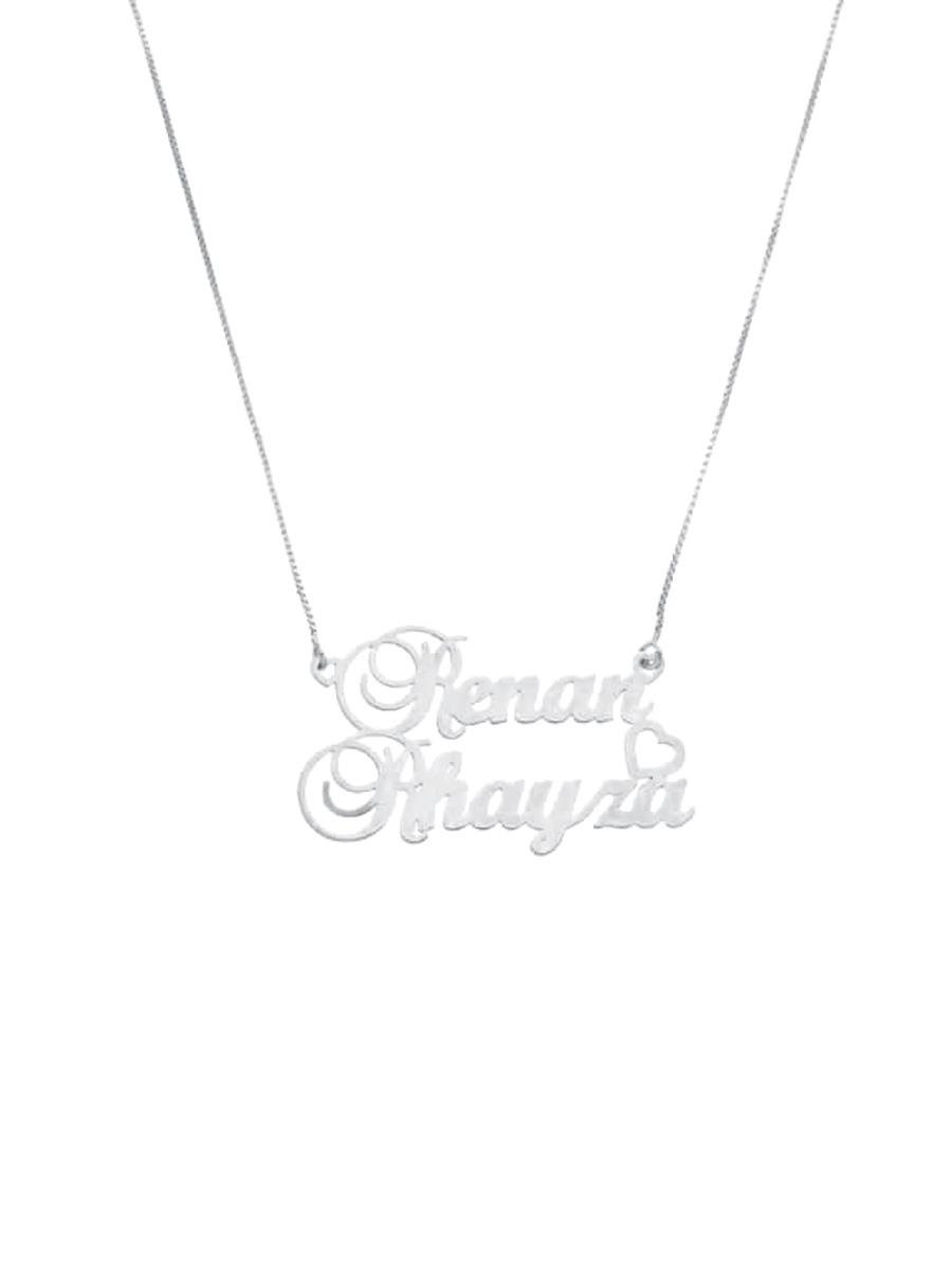 Colar de corrente veneziana com pingente de dois nomes (personalizado), banho de prata.| Comprimento | 45 cm (mais 5 cm de extensor) |