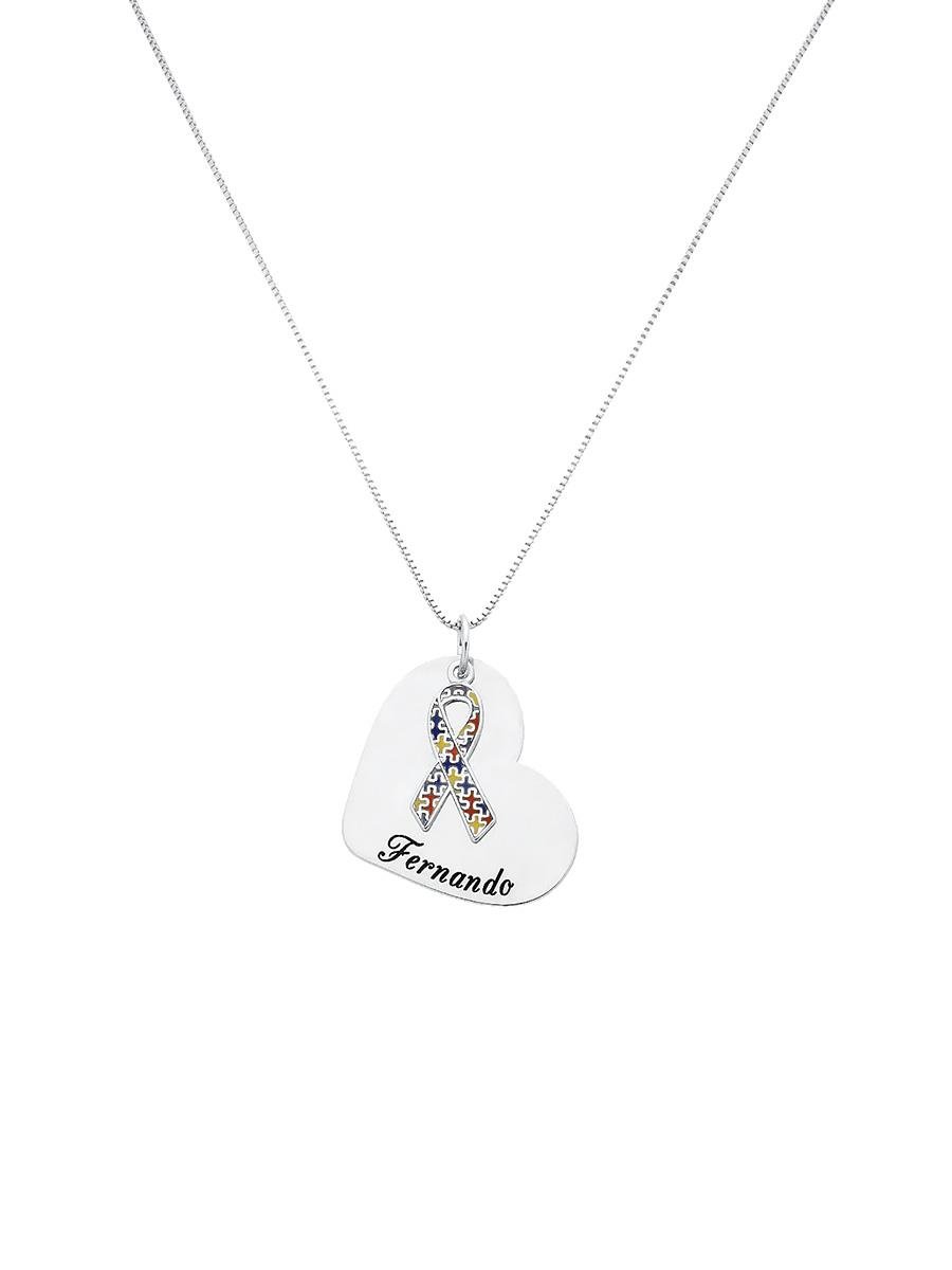 Colar de veneziana com pingente de coração liso para personalizar e fita de quebra-cabeça colorido, banho de prata.“Quero pedir personalizado do dia das mães, como funciona?”