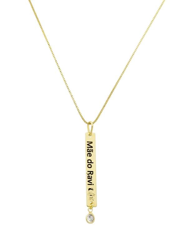 Colar de veneziana com pingente de plaquinha para personalizar e zircônia incolor, banho de ouro 18k.“Quero pedir personalizado do dia das mães, como funciona?”