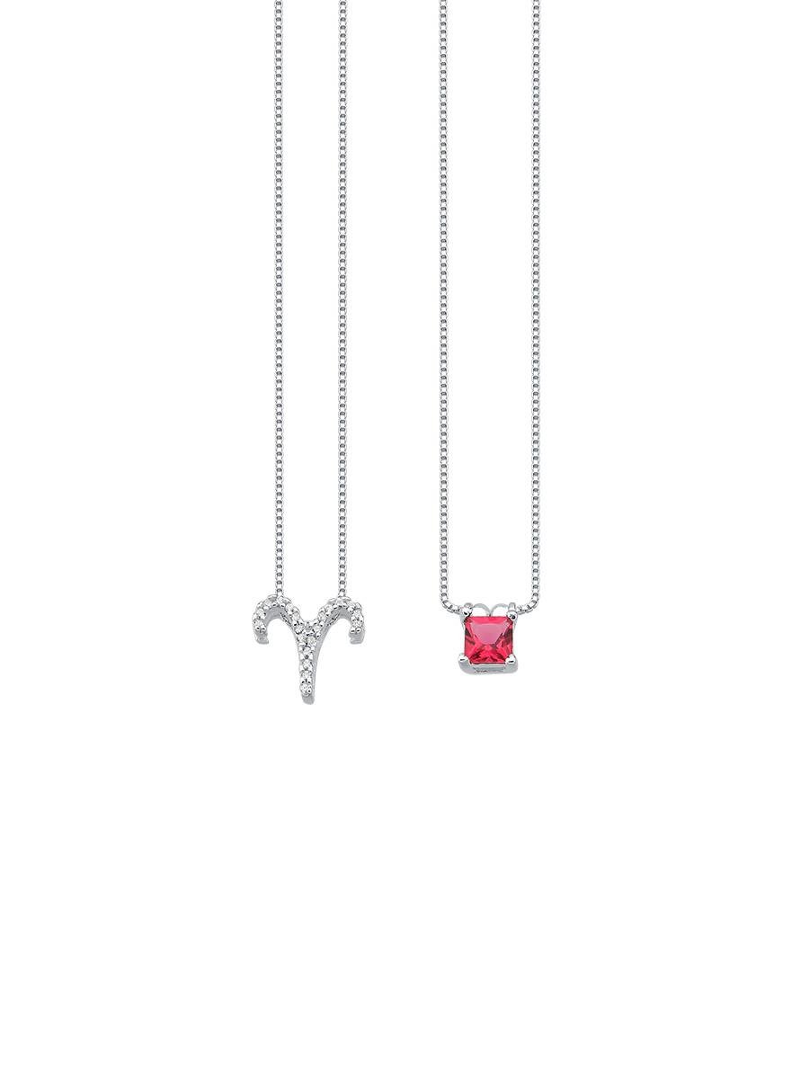 Colar de veneziana com pingente do signo de áries cravejado com zircônias incolores e zircônia rubi, prata 925.| Comprimento Fechado | 30 cm |