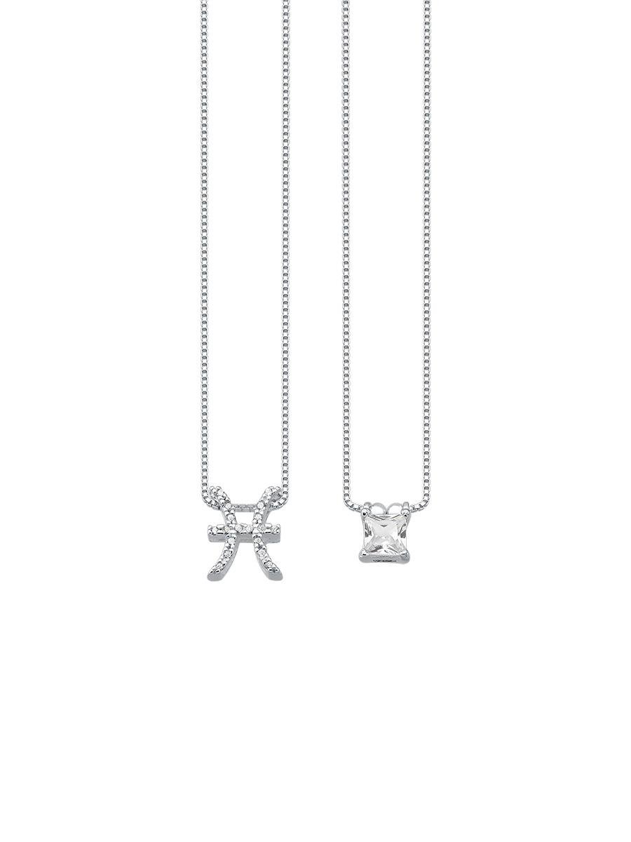 Colar de veneziana com pingente do signo de peixes cravejado com zircônias incolores e zircônia áqua, prata 925.| Comprimento Fechado | 30 cm |