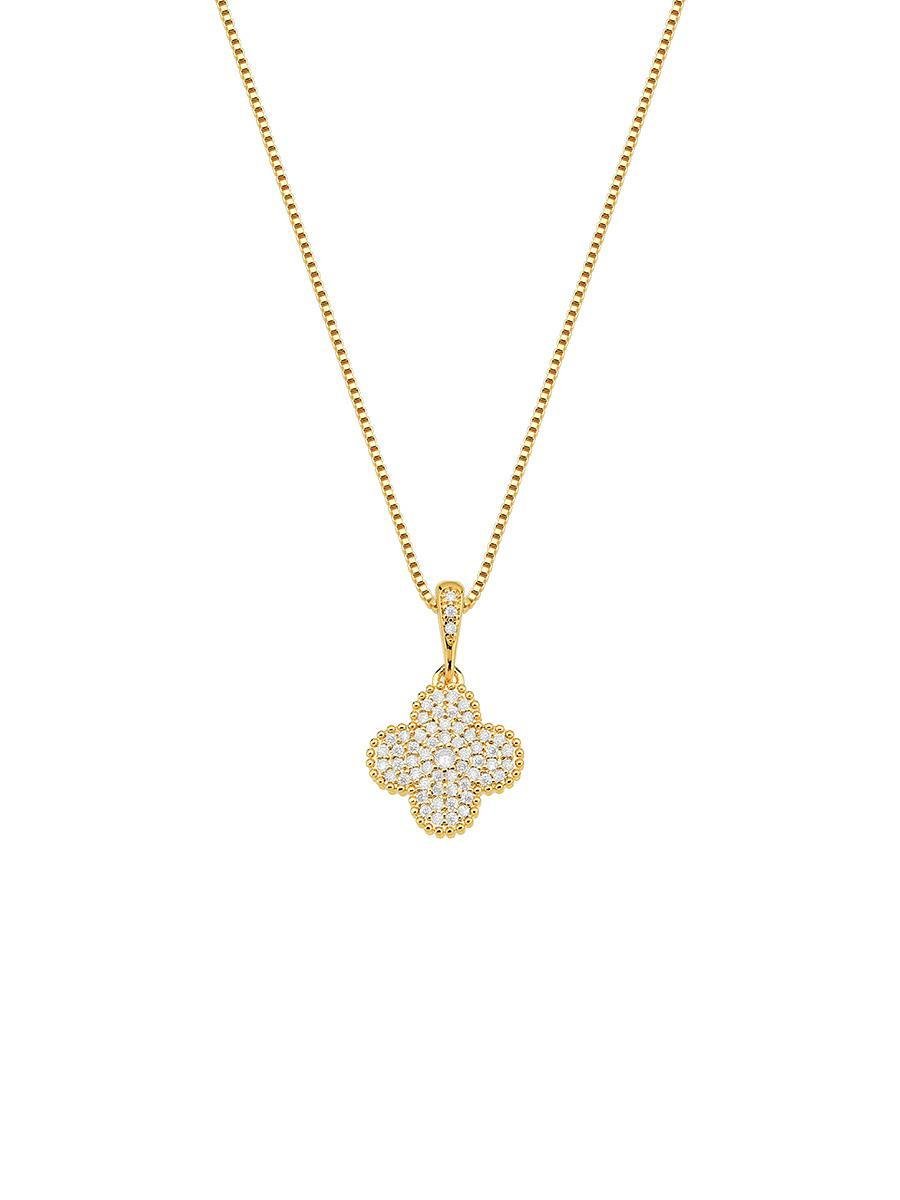 Colar Trevo Cravejado Banhado a Ouro 18k.Essa coleção foi pensada para que nossas revendedoras atendam todos os tipos de clientes. Temos uma coleção completa e com peças muito vendáveis como trios de brincos, pérolas, semijoias com detalhes em olho grego, peças religiosas, além de peças mais delicadas onde conseguimos atender uma grande variedade de clientes. Os aneis lisos e delicados vão completar o seu estoque com muita delicadeza e modernidade e também completar o mix das suas clientes na hora da venda.