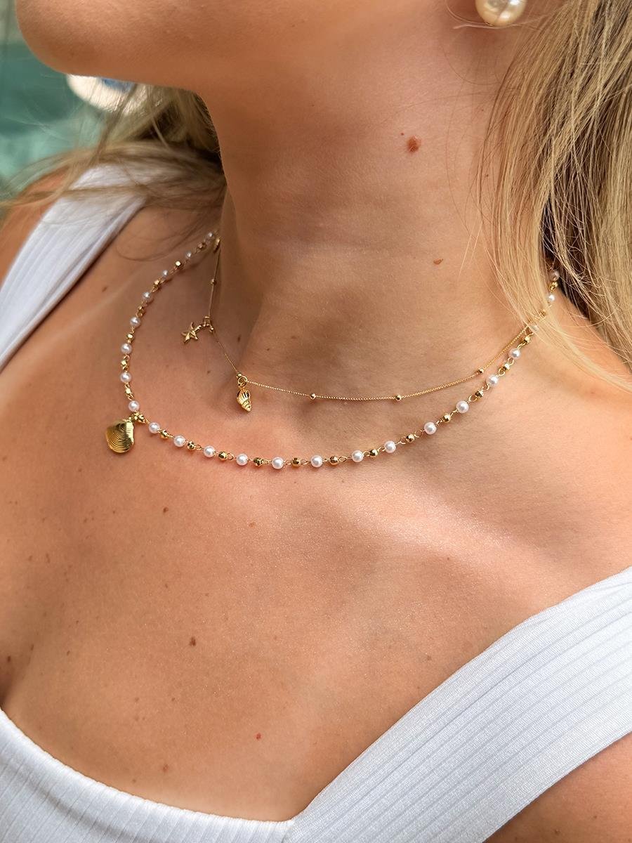 Colar Veneziana Fundo do Mar Banhado a Ouro 18K.A cápsula Summer Part II é inspirada no mar, na brisa da praia e na beleza natural das pérolas. A coleção reúne peças leves, femininas e atuais, pensadas para o clima do verão. Com um design versátil e atemporal, as semijoias acompanham diferentes momentos do dia, do look casual ao mais arrumado, sempre com um toque de leveza e estilo. São peças que combinam com o verão, mas continuam fazendo sentido em qualquer estação.