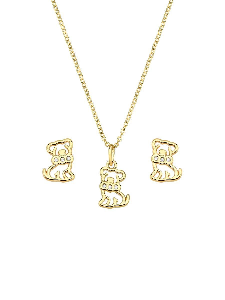 Conjunto Cachorro Cravejado Banhado a Ouro 18K.As semijoias infantis trazem a delicadeza e o encanto do universo das crianças.