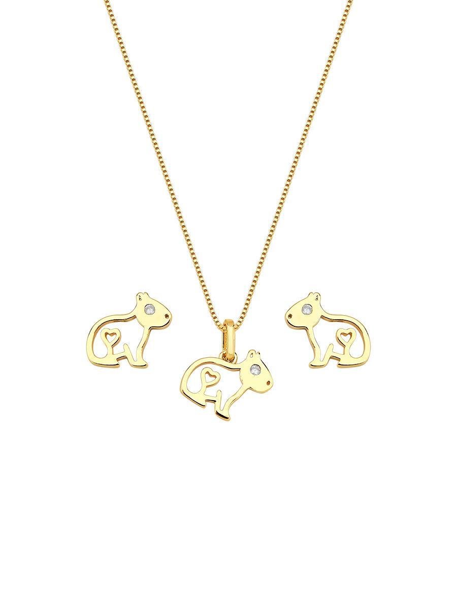 Conjunto Capivara Infantil Banhado a Ouro 18K.Nossa coleção "Memórias - Cada Presente, Uma História" foi criada para transformar o ato de presentear em algo ainda mais especial. Pensamos em cada detalhe para acompanhar nossas revendedoras nessa reta final de ano. As peças combinam o brilho das celebrações, a elegância e a delicadeza que marcam essa época do ano. São semijoias versáteis, perfeitas tanto para momentos festivos quanto para o dia a dia.