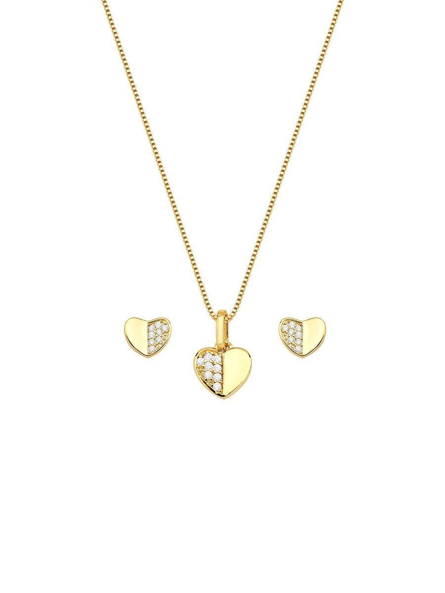 Conjunto Coração Liso E Cravejado | Infantil | Banhado A Ouro.Nossa linha de semijoias infantis foi criada para acompanhar os pequenos com beleza, leveza e muito cuidado. Com designs delicados e materiais hipoalergênicos, essas peças são perfeitas para incluir no seu mostruário e encantar clientes que procuram algo especial para presentear crianças de todas as idades. Cada detalhe é pensado com carinho para garantir conforto, durabilidade e um toque de fofura no visual dos pequenos.