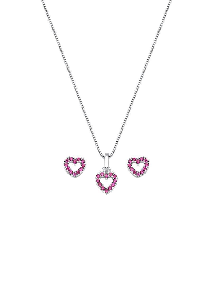 Conjunto Coração Vazado Rosa Cravejado | Infantil | Banho De Prata.Nossa linha de semijoias infantis foi criada para acompanhar os pequenos com beleza, leveza e muito cuidado. Com designs delicados e materiais hipoalergênicos, essas peças são perfeitas para incluir no seu mostruário e encantar clientes que procuram algo especial para presentear crianças de todas as idades. Cada detalhe é pensado com carinho para garantir conforto, durabilidade e um toque de fofura no visual dos pequenos.