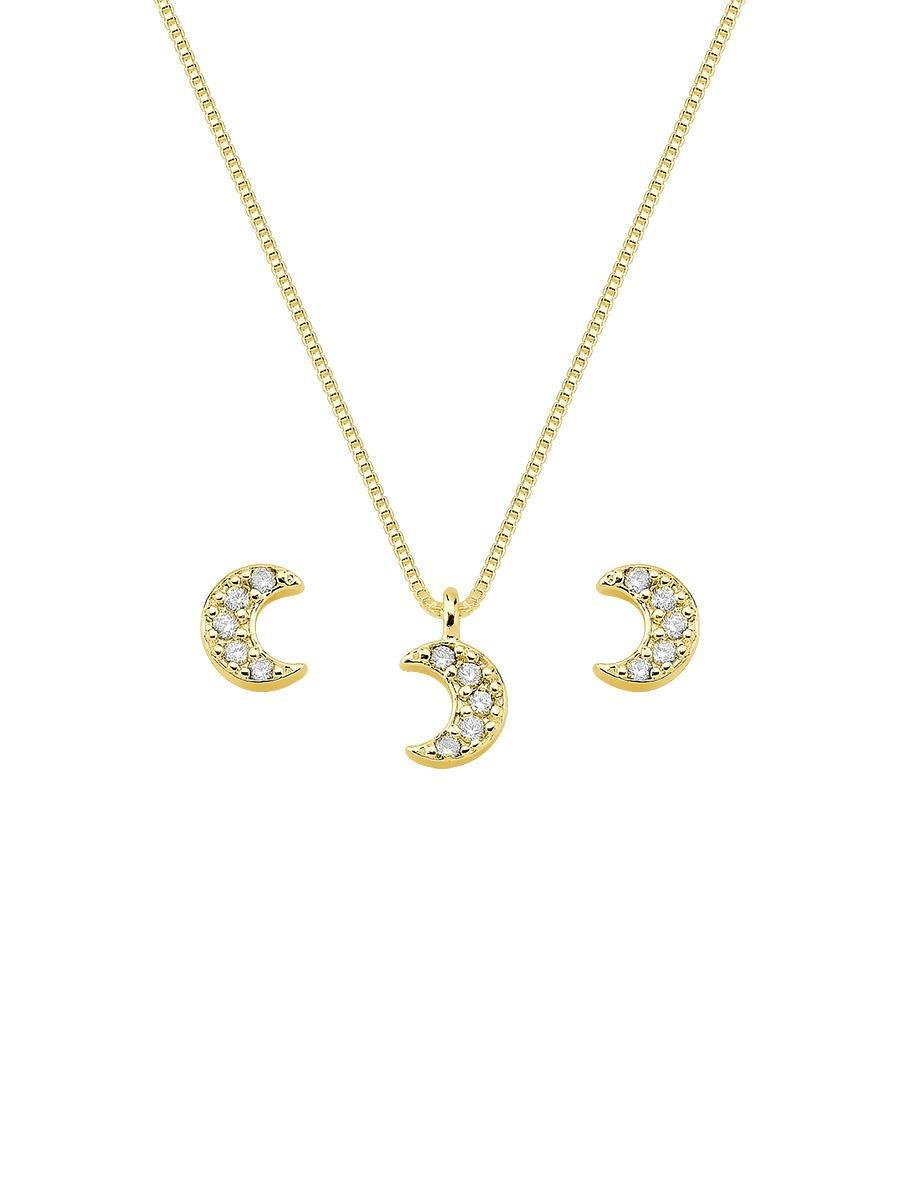 Conjunto Lua Cravejada Banhado a Ouro 18K.Semijoias cravejadas são sinônimo de luxo e delicadeza, trazendo um toque de sofisticação para qualquer mostruário. Com pedras minuciosamente cravejadas, elas oferecem um brilho único, refletindo sofisticação e exclusividade. Semijoias cravejadas são verdadeiros ícones no mundo da moda, sendo tendência constante entre os acessórios mais desejados. Além da beleza visual, nossas peças cravejadas são produzidas com materiais de alta durabilidade, garantindo que cada detalhe mantenha seu brilho e acabamento impecável por muito mais tempo.