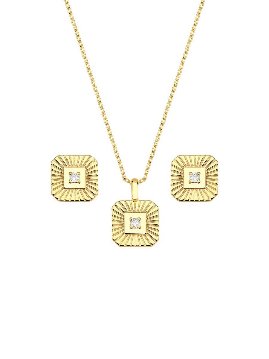Conjunto Quadrado Texturizado Incolor Banhado a Ouro 18K.Nossa coleção "Memórias - Cada Presente, Uma História" foi criada para transformar o ato de presentear em algo ainda mais especial. Pensamos em cada detalhe para acompanhar nossas revendedoras nessa reta final de ano. As peças combinam o brilho das celebrações, a elegância e a delicadeza que marcam essa época do ano. São semijoias versáteis, perfeitas tanto para momentos festivos quanto para o dia a dia.