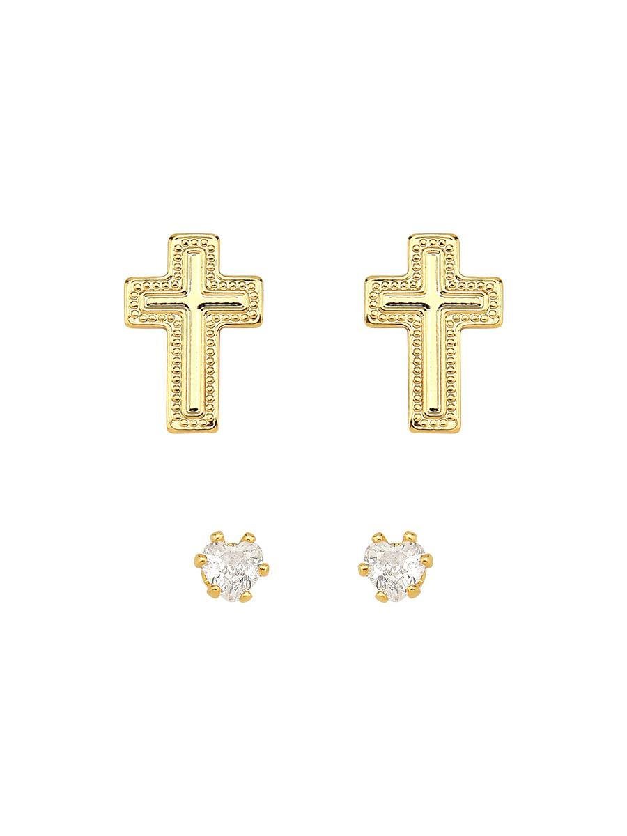 Dupla de Brinco Ponto de Luz e Cruz Infantil Banhado a Ouro 18K.As Novidades de Fevereiro foram pensadas para quem deseja revender semijoias com mais facilidade e montar uma maleta moderna e versátil. Inspirada no conceito de duas peças na mesma cartela, essa coleção reúne semijoias minimalistas e atemporais, com modelos que incluem pérolas, colares, mistura de banhos, argolas e braceletes, ideais para atender diferentes estilos de clientes.