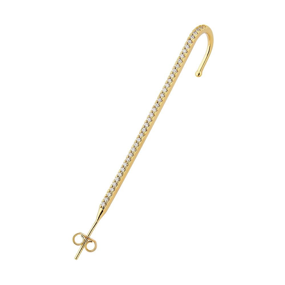 -Brinco modelo ear pin, cravejado com micro zircônias incolores, que se posiciona de forma transversal na orelha.