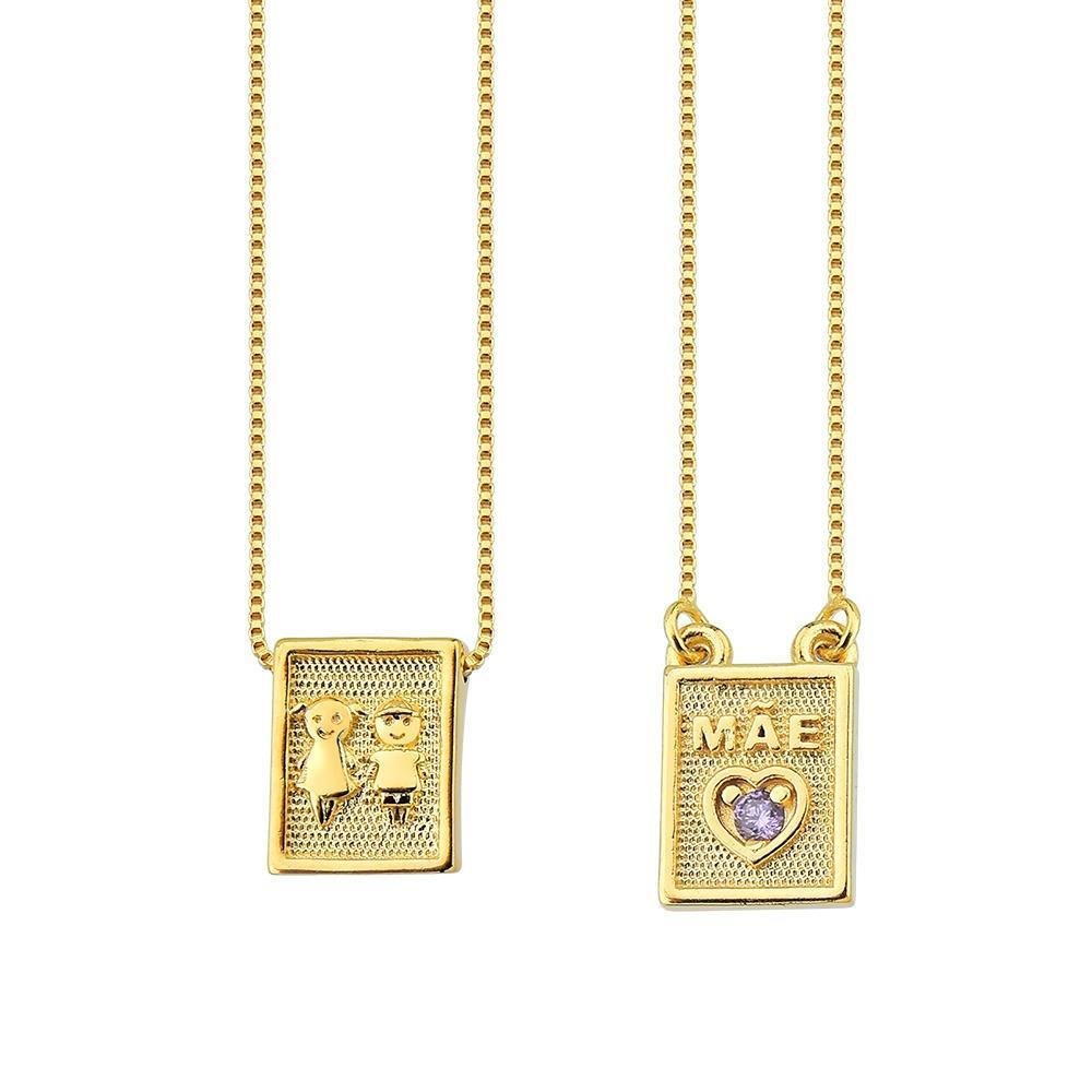 - Colar modelo escapulário de corrente veneziana com plaquinhas com uma menina e um menino e coração ametista.