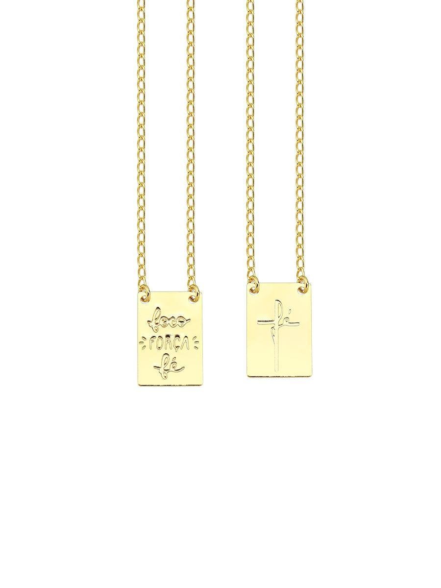 Escapulário Foco Força e Fé Banhado a Ouro 18K.Semijoias religiosas são muito mais do que acessórios são símbolos de proteção, fé e devoção. Com designs delicados e atemporais, essas peças são indispensáveis no mostruário de qualquer revendedora, conquistando clientes que buscam conexão e acessórios cheios de significado.