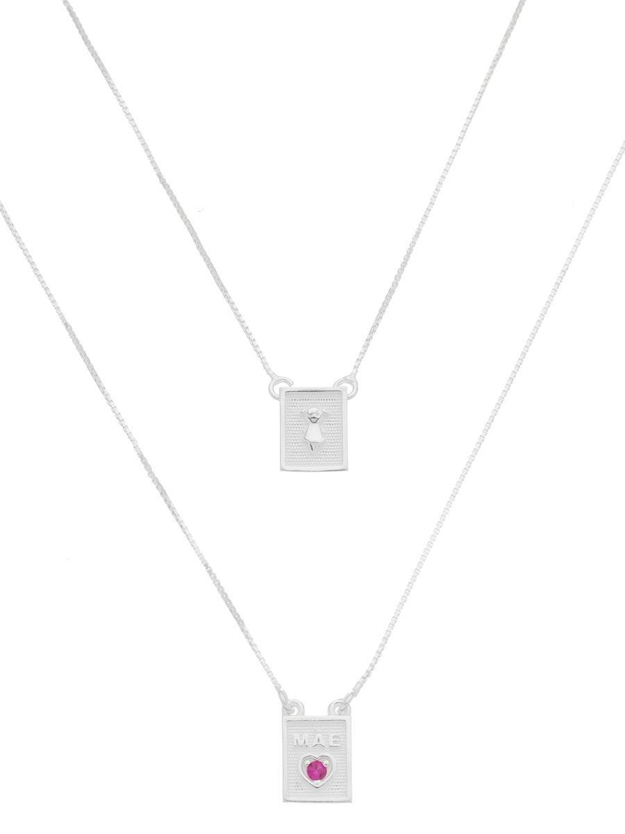 Colar modelo escapulário de corrente veneziana com plaquinhas com uma menina e coração rosa, prata 925.: