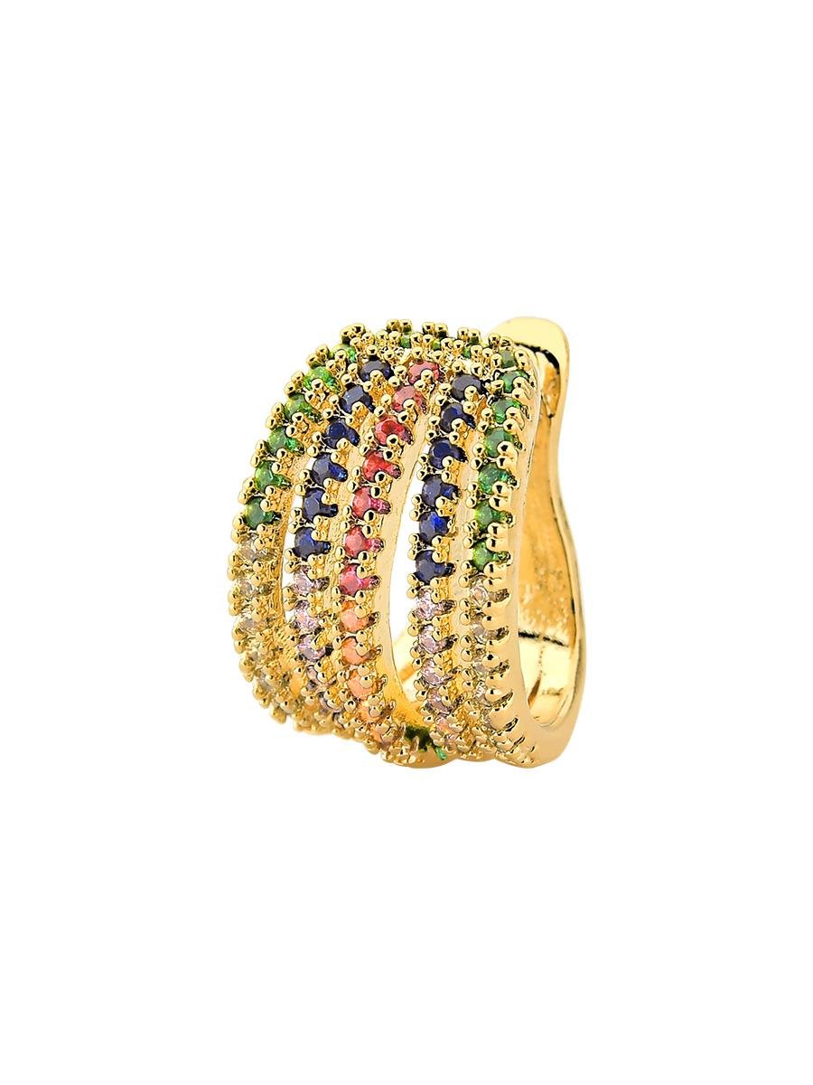 Piercing fake cravejado com zircônias coloridas, banho de ouro 18k.| Altura | 1.2 cm |