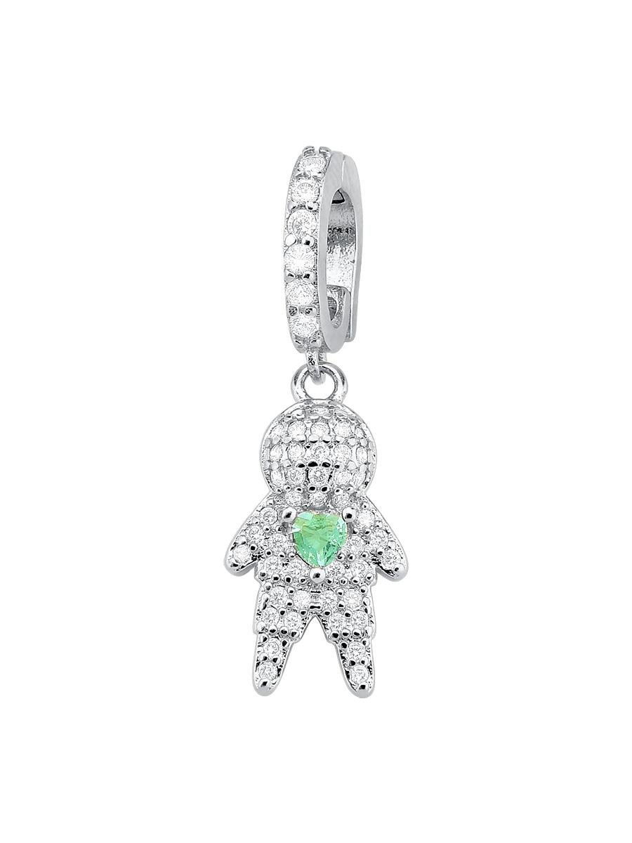 Pingente de menino cravejada com zircônias incolores e coração turmalina, banho de ródio branco.| Tamanhos | |