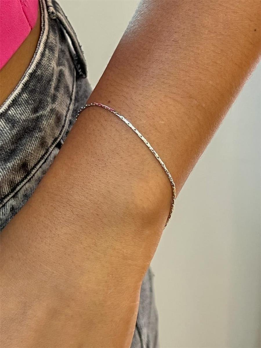 Pulseira Malha Trabalhada Banhado a Ródio Branco.As correntarias são a base de qualquer coleção de semijoias, oferecendo uma infinidade de possibilidades para compor e realçar diferentes looks. Nossa linha de correntes inclui desde o clássico cordão baiano até malhas, fitas, sendo cada peça pensada para trazer estilo e sofisticação ao seu mostruário. Feitas com materiais de alta qualidade e acabamentos perfeitos, essas correntes são versáteis, podendo ser usadas sozinhas ou combinadas com pingentes e outras semi joias, criando composições únicas para suas clientes.