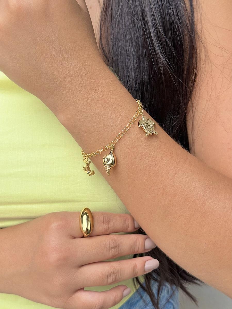 Pulseira Mar Banhado a Ouro 18K.A cápsula Summer Part III é inspirada no mar, na brisa da praia e na beleza natural das pérolas. A coleção reúne peças leves, femininas e atuais, pensadas para o clima do verão. Com um design versátil e atemporal, as semijoias acompanham diferentes momentos do dia, do look casual ao mais arrumado, sempre com um toque de leveza e estilo. São peças que combinam com o verão, mas continuam fazendo sentido em qualquer estação.