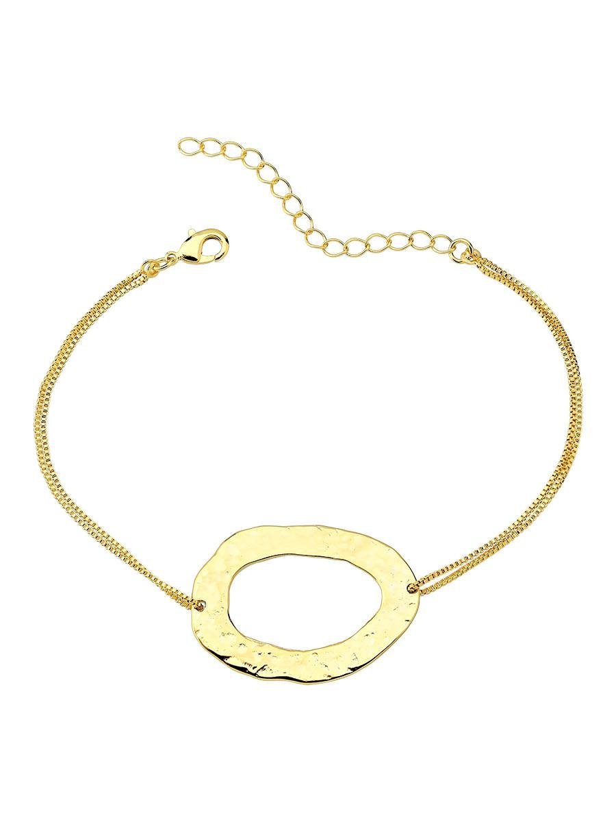 Pulseira de veneziana com pingenete em formato organic com detalhes martelados, banho de ouro 18k.| Comprimento | 17 cm (mais 5 cm de extensor) |