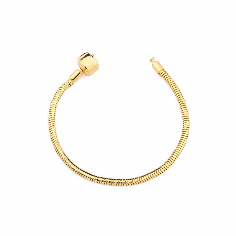Pulseira para Berloque 17CM Banhado a Ouro 18k.Nossas semijoias lisas são a escolha perfeita para quem aprecia o design minimalista e a sofisticação discreta. Com acabamento impecável e um brilho sutil, essas semijoias trazem elegância e modernidade em uma estética clean. As superfícies lisas, sem detalhes ou texturas adicionais, garantem um visual versátil que pode ser facilmente combinado com outros acessórios, criando composições equilibradas e sofisticadas para o seu mostruário. Ideais tanto para o uso diário quanto para ocasiões especiais, as peças lisas são atemporais, trazendo uma beleza que nunca sai de moda.