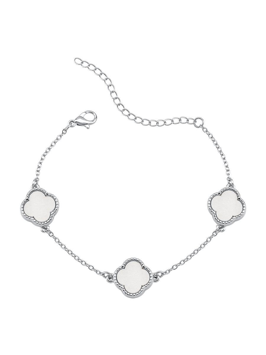 Pulseira Trevo P Pérola Banhado no Ródio Branco.As semijoias com design de trevo trazem a combinação perfeita entre elegância e modernidade. Inspiradas na forma do trevo, símbolo clássico de sorte e boas energias, essas semijoias são delicadamente confeccionadas e banhadas em ouro ou ródio, garantindo brilho duradouro e sofisticação. Ideais para quem busca um toque de estilo único, essas semijoias vão trazer para o seu mostruário um visual refinado e cheio de significado. Seu design versátil combina facilmente com outros acessórios, permitindo composições harmoniosas e elegantes.