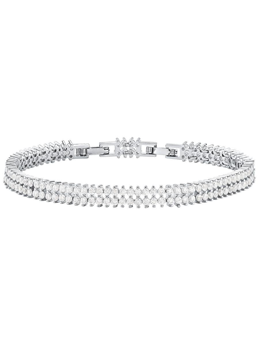 Pulseira de com dois fios com zircônias cravejadas, banho de ródio branco.| Comprimento | 16 cm (mais 1 cm de extensor) |