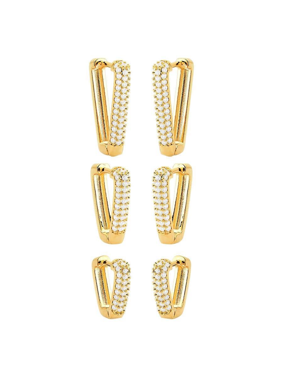 Trio Argola V Cravejada Banhado a Ouro 18k.| G | M | P | |