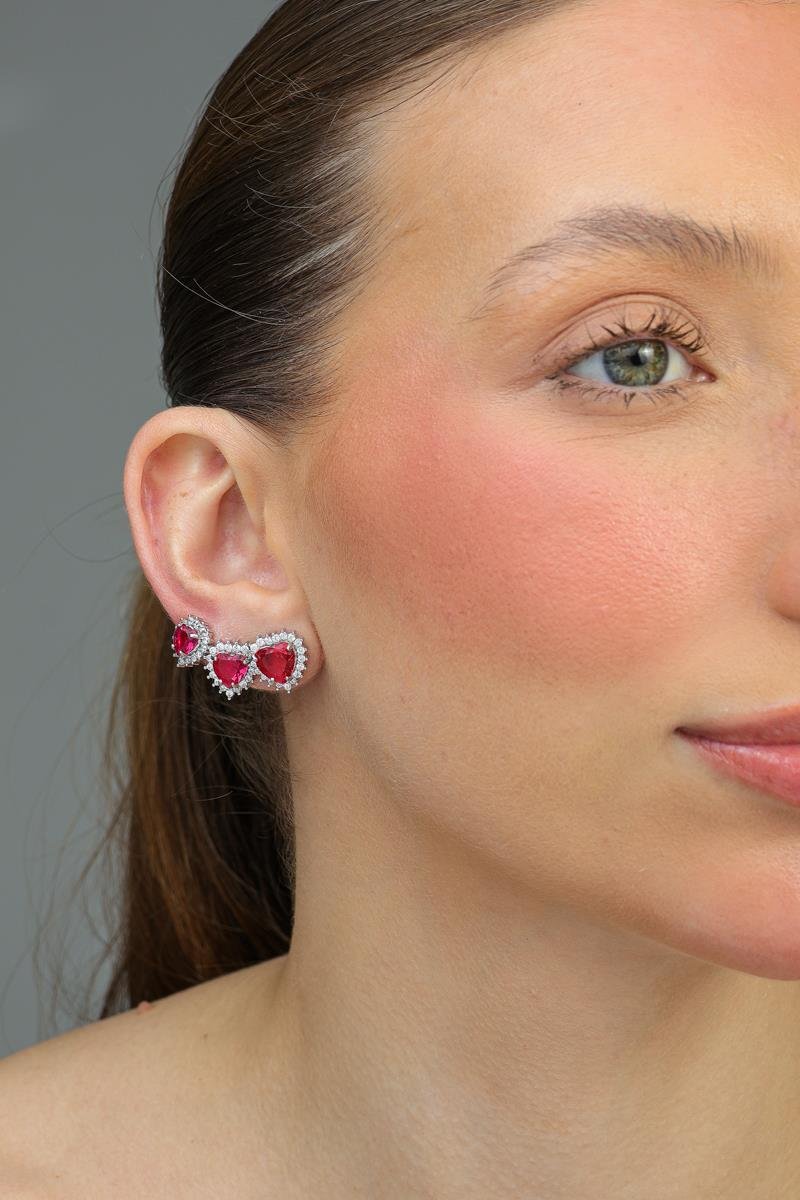 Trio de Brinco Coração Cravejado Rubi, Banhado a Ródio Branco.Após o sucesso da primeira edição, a Coleção Spring II chega com ainda mais estilo e sofisticação. Essa coleção exclusiva foi pensada especialmente para revendedoras de semijoias que desejam oferecer peças modernas, elegantes e atemporais, aumentando suas vendas com modelos de alta procura no mercado.