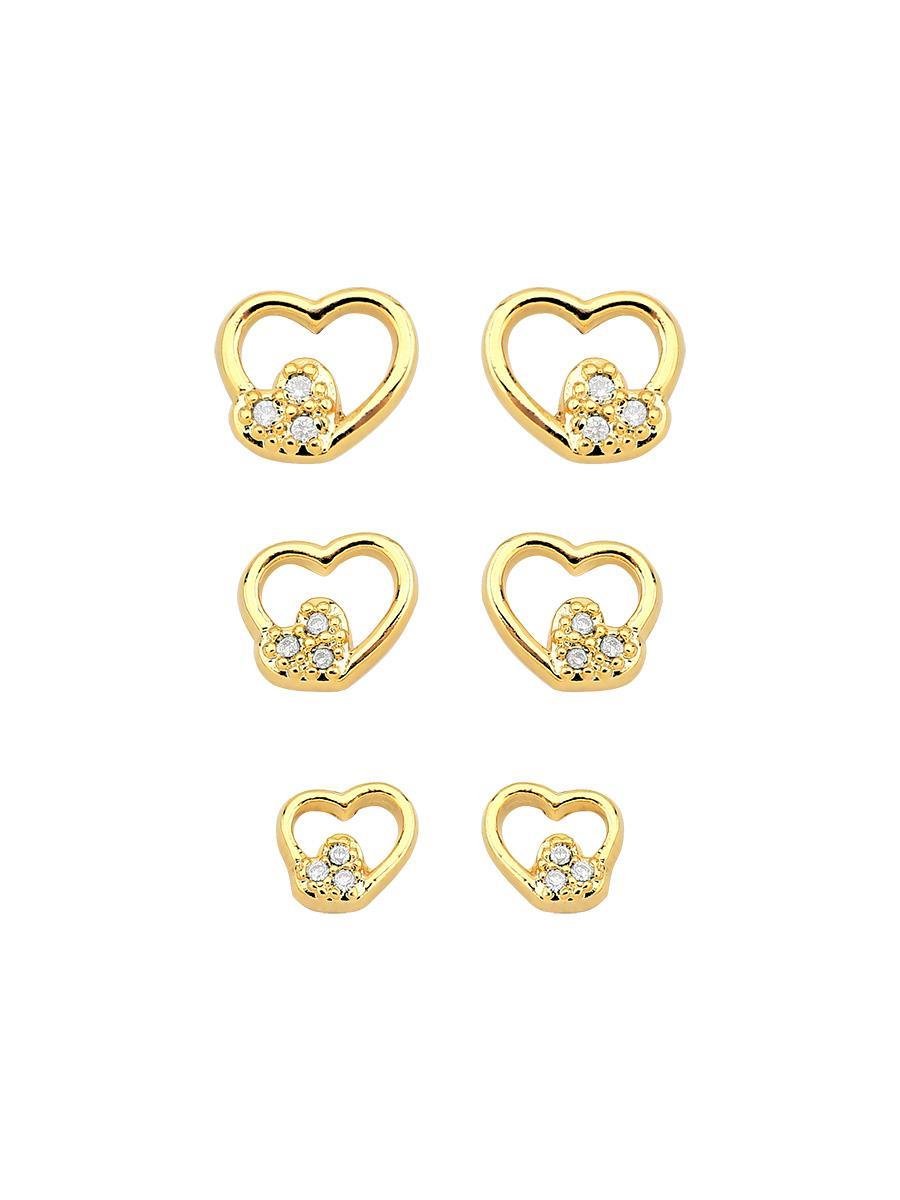 Trio de Brinco Coração Vazado Cravejado Banhado a Ouro 18K.A coleção de outubro chegou para oferecer versatilidade e elegância em cada detalhe. Com uma seleção completa de correntarias, brincos delicados, anéis modernos, braceletes, argolas, conjuntos especiais e peças com pérolas, além de modelos em ródio e banho a ouro, é perfeita para revendedoras que buscam variedade e qualidade. Cada peça foi pensada para atender todos os estilos, encantar clientes exigentes e aumentar as vendas com semijoias que combinam sofisticação e versatilidade.