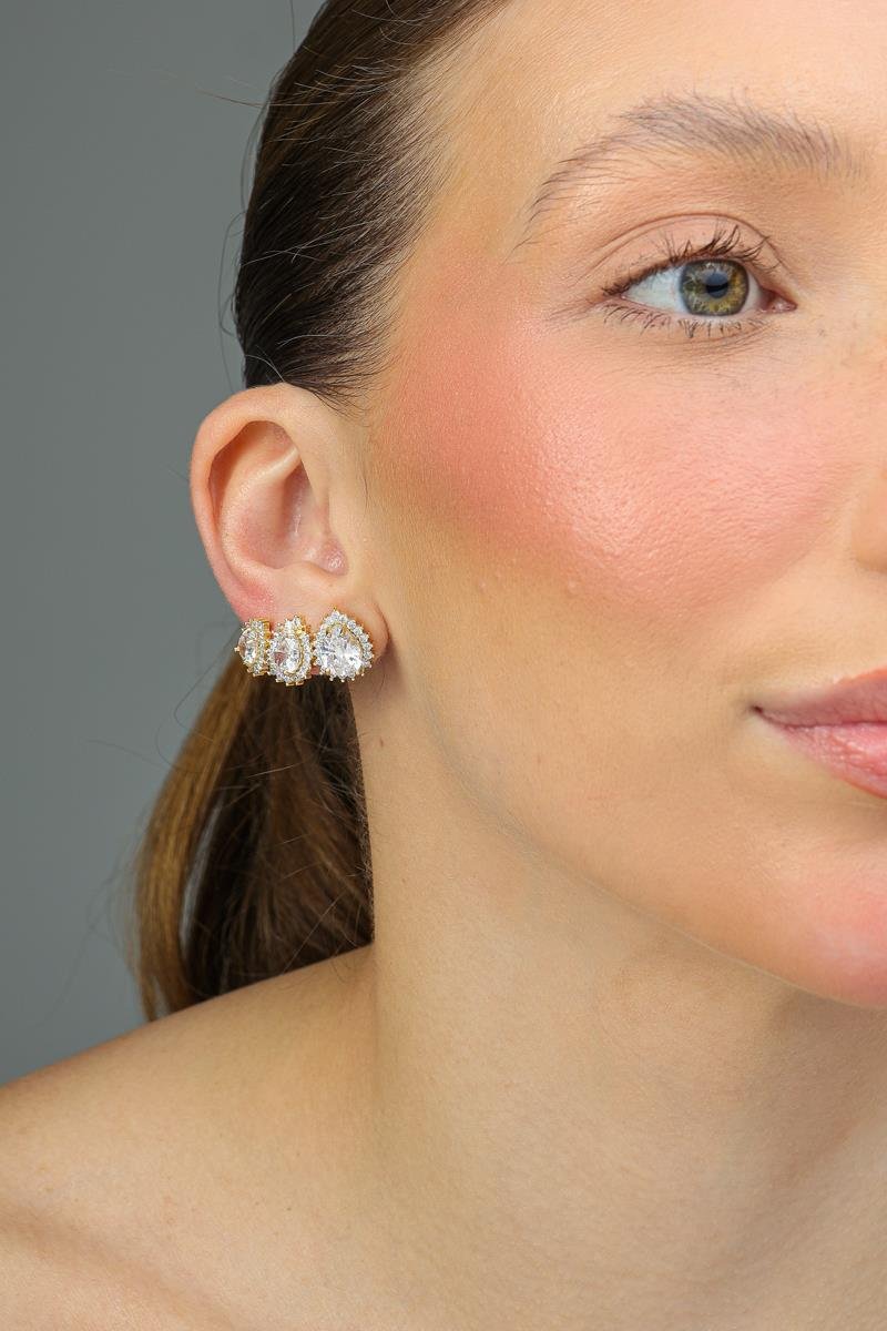 Trio de Brinco Gota Cravejada Banhado a Ouro 18K.Após o sucesso da primeira edição, a Coleção Spring II chega com ainda mais estilo e sofisticação. Essa coleção exclusiva foi pensada especialmente para revendedoras de semijoias que desejam oferecer peças modernas, elegantes e atemporais, aumentando suas vendas com modelos de alta procura no mercado.
