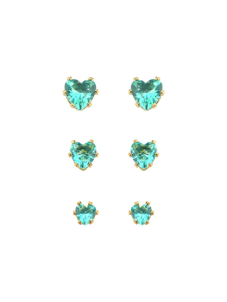 Trio de Brincos Coração Verde Turmalina Banhado a Ouro 18k.Semijoias cravejadas são sinônimo de luxo e delicadeza, trazendo um toque de sofisticação para qualquer mostruário. Com pedras minuciosamente cravejadas, elas oferecem um brilho único, refletindo sofisticação e exclusividade. Semijoias cravejadas são verdadeiros ícones no mundo da moda, sendo tendência constante entre os acessórios mais desejados. Além da beleza visual, nossas peças cravejadas são produzidas com materiais de alta durabilidade, garantindo que cada detalhe mantenha seu brilho e acabamento impecável por muito mais tempo.