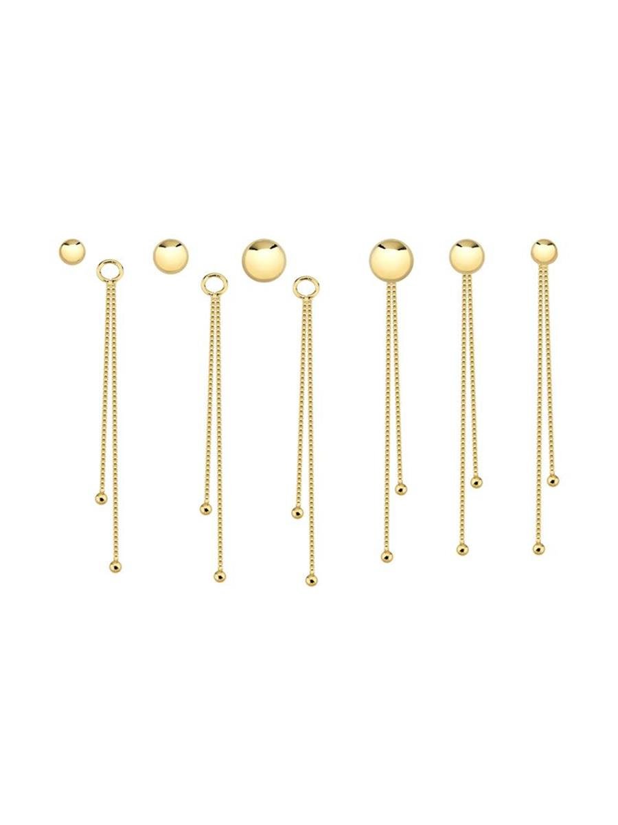 - Trio de brincos fixos em formato de bola lisa com franja dupla removível de 3/4 cm.
